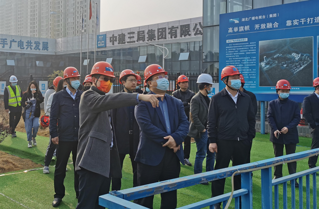 郭忠同志一行先后前往传媒基地事业核心板块、生活板块、产业板块施工现场,实地查看广电传媒大厦、长江广电·光谷家(一期)、长江文创产业园工程进度、质量管理、安全生产、疫情防控等情况。