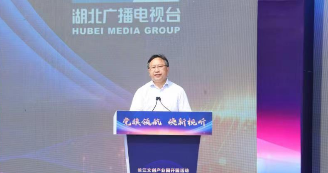邓务贵同志首先对文创产业园开园表示热烈祝贺。他指出,刚刚闭幕的省第十二次党代会,擘画了未来五年湖北发展的宏伟蓝图,对坚定文化自信、加快文化强省建设步伐作出重要部署,明确要求实施文化产业数字化战略,推动文化新兴业态上水平、提档次、成规模,打造文化产业增长极。湖北台坚持高起点规划、高标准定位、高效率推进,把长江文创产业园打造成为国家网络视听产业园核心园区,是贯彻落实省第十二次党代会精神的具体行动,体现了锚定新发展、建设先行区的强烈争先意识和使命担当。他希望,湖北台以产业园开园为新的起点,发挥东湖高新区国家级文化和科技融合示范基地优势,用好中国(湖北)网络视听产业园金字招牌,以内容生产为核心,以智能化传播为载体,以全产业链协同发展为特色,完善产业规划、发挥平台效应,推动要素向基地聚集、项目向园区集中、产业向高端迈进,着力打造中部乃至全国数字文化产业集聚区、先行区。