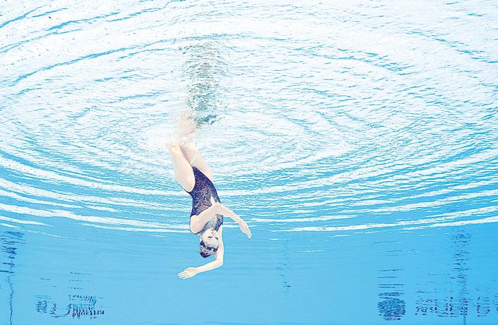 7月22日,世界游泳锦标赛花样游泳女子单人自由自选决赛在新加坡举行,中国选手徐汇妍在比赛中。(新华社发)