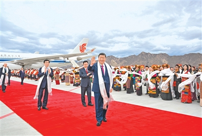 人民日报拉萨8月20日电 中共中央总书记、国家主席、中央军委主席习近平率中央代表团20日中午乘专机抵达拉萨,出席西藏自治区成立60周年庆祝活动。习近平作为中共中央总书记、国家主席、中央军委主席率中央代表团到西藏出席西藏自治区成立庆祝活动,在党和国家历史上是第一次,充分体现了党中央对西藏工作的高度重视、对西藏各族干部群众的亲切关怀。