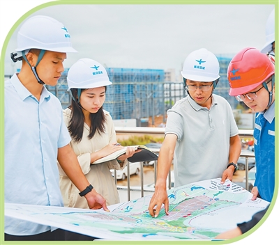 宜昌高新区白洋工业园产业发展服务中心工作人员在园区现场协调推进项目建设。黄翔摄