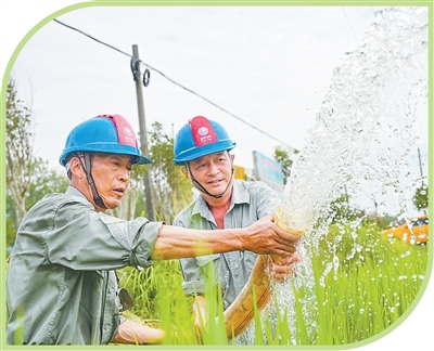 在黄冈市英山县温泉镇沙湾河村,国网英山县供电公司党员服务队协助解决农户灌溉问题。王江 姚文章摄影报道