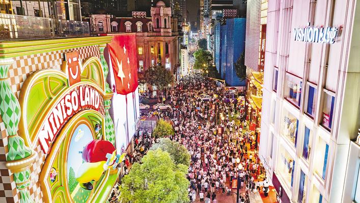 10月4日晚,大批市民游客前往武汉江汉路步行街,川流不息的人群一眼望不到头。武汉夜间消费场景升级,打造“游购娱食”一体化夜游体系,吸引众多消费者,“夜间经济”活力满满。(湖北日报全媒记者 何宇欣 摄)