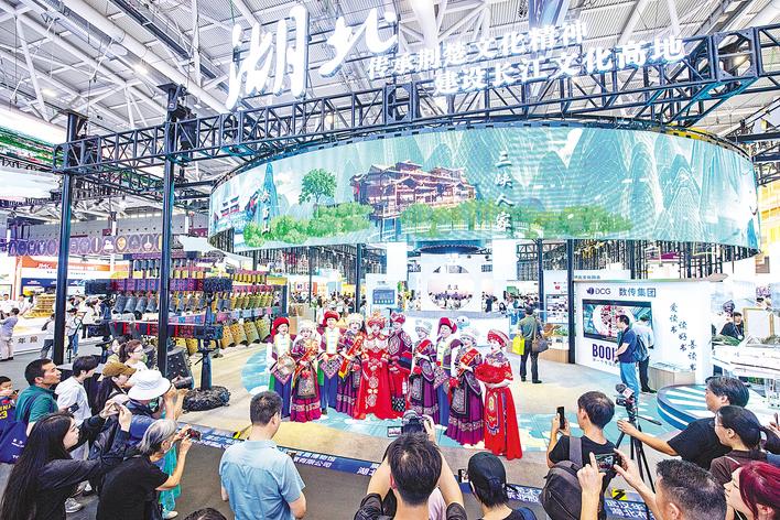 中国(深圳)国际文化产业博览交易会上,湖北馆生动展现荆楚风、长江潮、文化韵、科技感的新时代湖北文化特色。(湖北日报全媒记者 何宇欣 摄)
