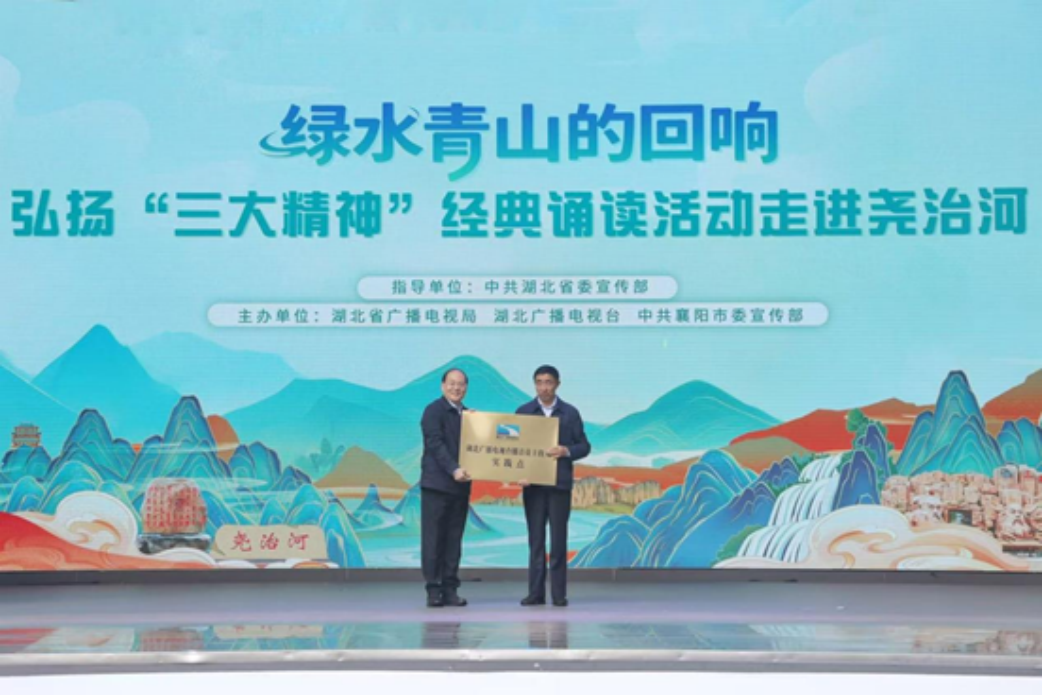在“绿水青山就是金山银山”理念提出20年之际,为大力弘扬“大别山精神、抗洪精神、抗疫精神”,广泛践行社会主义核心价值观,9月30日,由湖北省委宣传部指导、湖北省广播电视局、湖北广播电视台、襄阳市委宣传部主办的大型全媒体活动“绿水青山的回响——弘扬‘三大精神’经典诵读走进尧治河”成功举办。活动以经典诵读为媒、以精神传承为魂,通过故事化呈现、沉浸式探访、融合化传播,全面展现“三大精神”与“两山”理念在乡村振兴中的深层共鸣与实践价值。湖北省委宣传部副部长,省广播电视局党组书记、局长张世华,湖北广播电视台党委委员、副台长何伟,襄阳市委常委、宣传部部长徐冰出席活动。