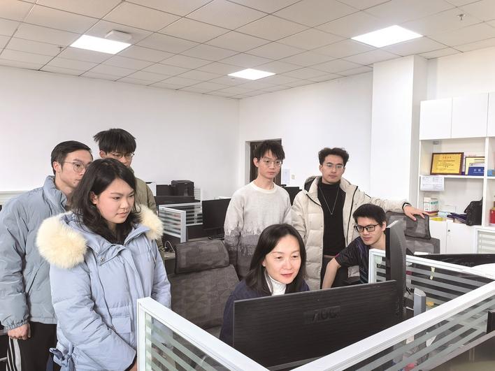 武汉大学自然语言处理实验室的彭敏教授及其团队针对大语言模型领域,讨论博士生在神经符号自学习的复杂知识推理方面的工作进展和实验结果。(武汉大学工会供图)