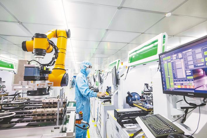 锐科激光黄石智造基地,员工在自动化生产线上赶制激光器订单。(湖北日报全媒记者 薛婷 摄)