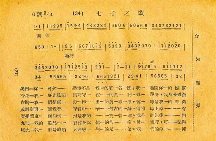 《公民诗歌》收录的曲谱,是目前发现最早的《七子之歌》曲谱。