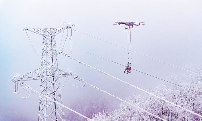 1月20日,在保康后坪镇蜡烛山村,110千伏翁天一回42—43号塔导线上方,一台灵巧的除冰机器人正沿着覆冰的导线稳步前行,所过之处冰层被逐层剥离,簌簌抖落。这台除冰机器人搭配远程控制、自主导航及制动功能,速度是人工十倍,成为守护电网安全的新一代智能战士。