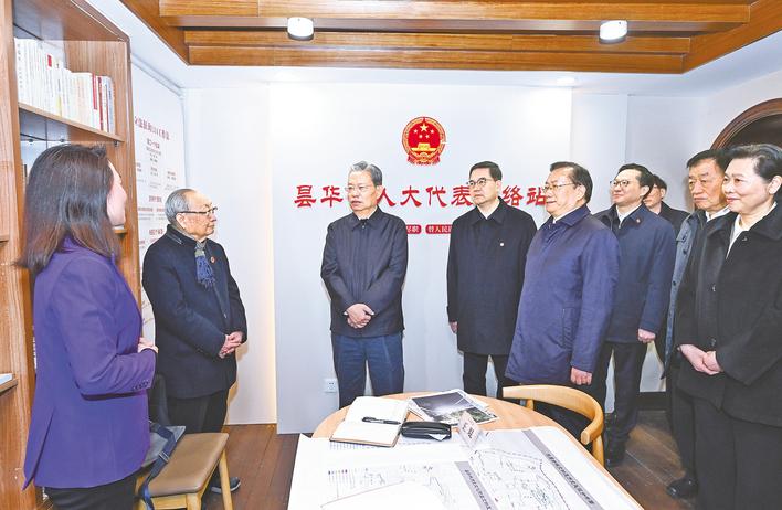 1月22日至24日,中共中央政治局常委、全国人大常委会委员长赵乐际在湖北调研。这是1月24日,赵乐际在武汉市武昌区昙华林人大代表联络站调研。(新华社发)