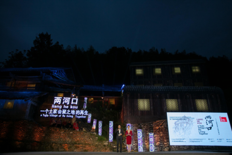 5月21日,由湖北卫视事业部承办的“两河口:一个土家会聚之地的再生——第十七届威尼斯建筑双年展平行展单元”展览开幕仪式在宣恩彭家寨“两河口”举行,活动通过跨国连线双向交互的方式,与意大利威尼斯卡纳雷吉欧区禅宫主会场同步直播。
